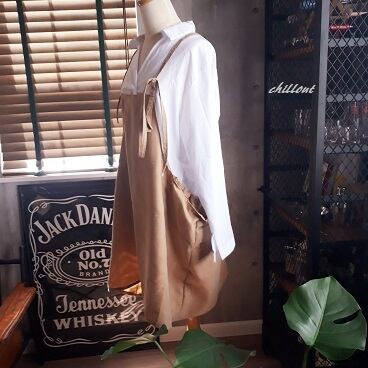 【背中がかわいい】エプロンドレス:ダンガリーオークル【0387】