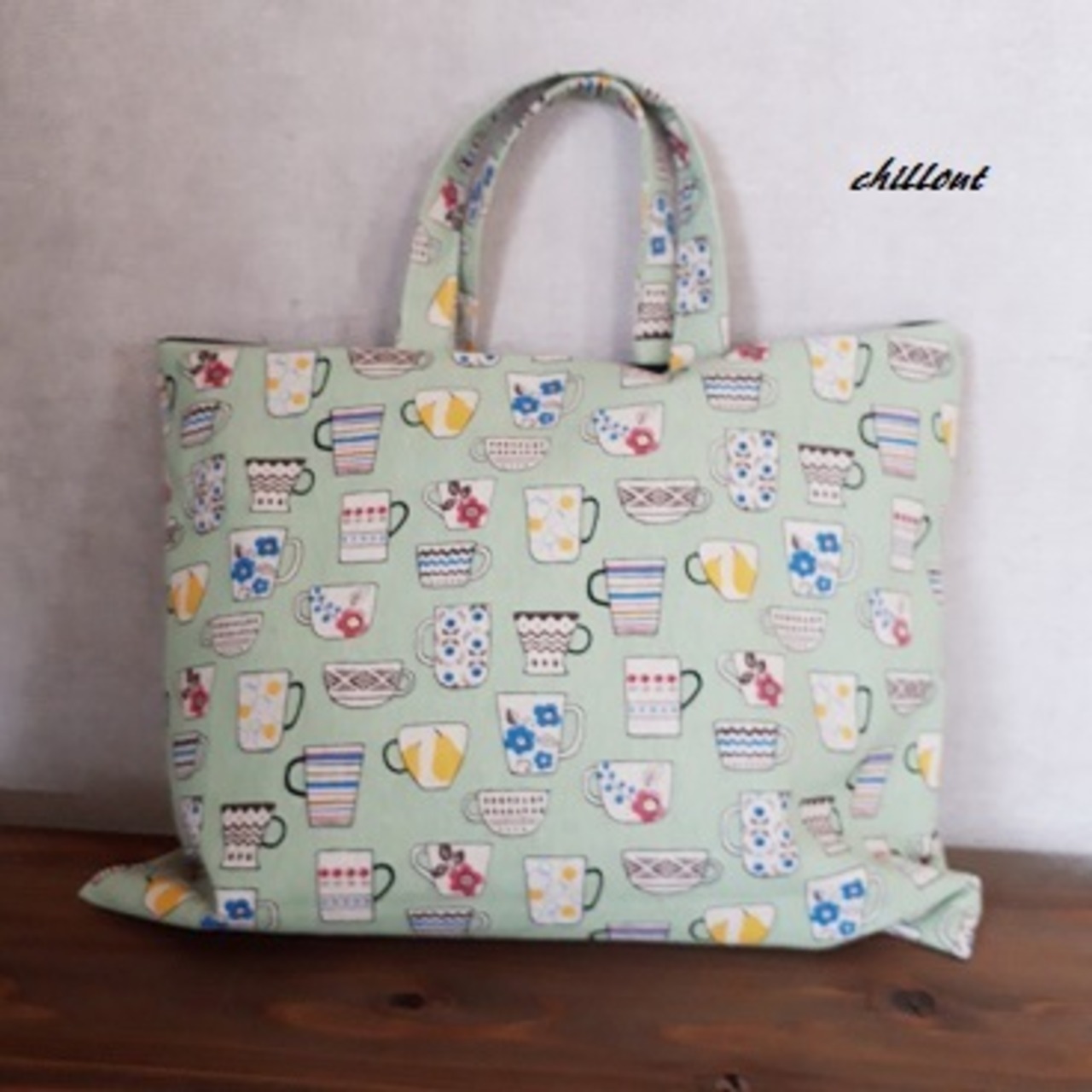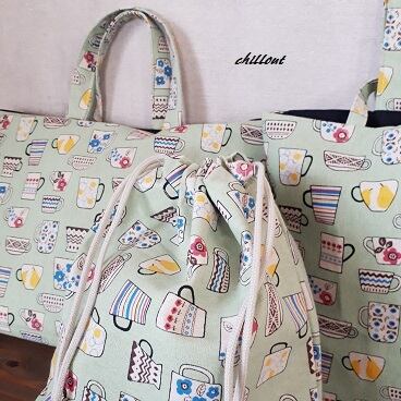 とてもかわいらしいティーカップ柄の入園バッグ3点セットです。