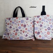 入園バッグ2点セット:花柄:くすみブルー【0451】