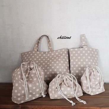 入園バッグ5点セット:ドット:ベージュ【0469】
