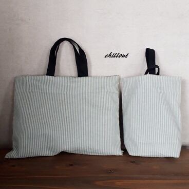 ストライプ:ソフトリネンの入園バッグ5点セットが出来上がりました!