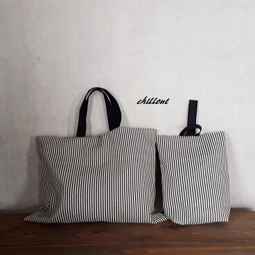 ストライプ:ソフトリネンの入園バッグ5点セットが出来上がりました!