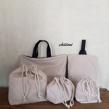 ストライプ:ソフトリネンの入園バッグ5点セットが出来上がりました!