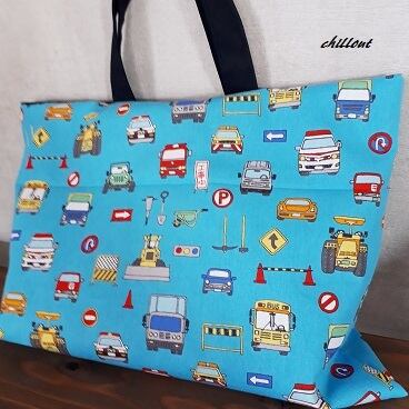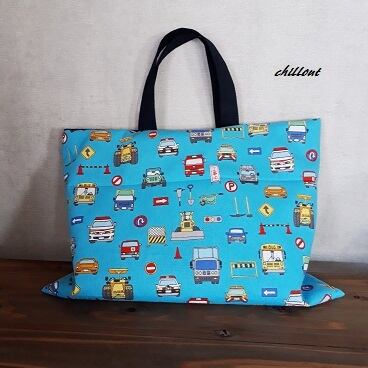 入園:レッスンバッグ:働く車:ブルー【0522】