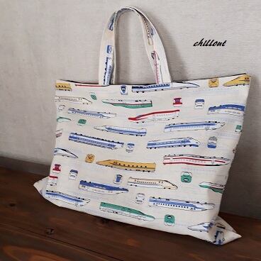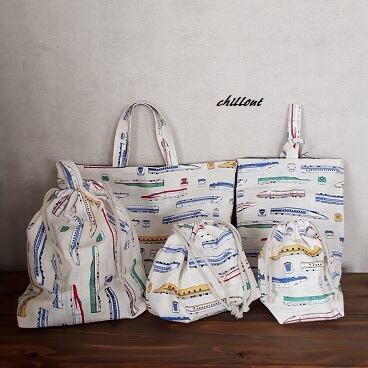 トレイン柄の入園バッグ5点セットが出来上がりました!