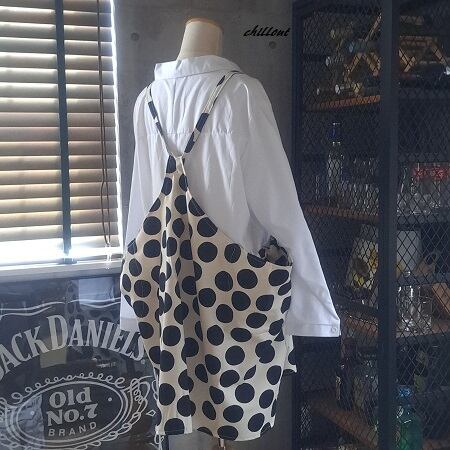 【背中がかわいい】エプロンドレス:ブラックドット【0550】
