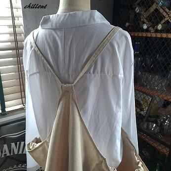 胸のリボンを調節することができるのでエプロンの位置は自由自在。
