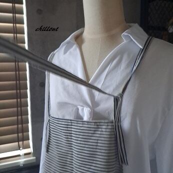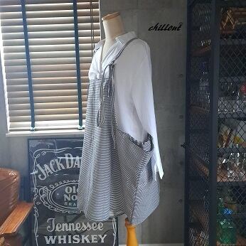 【背中がかわいい】エプロンドレス:ネイビーストライプ【0556】
