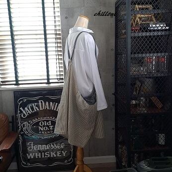 【背中がかわいい】エプロンドレス:グレーストライプ×グレー【0561】