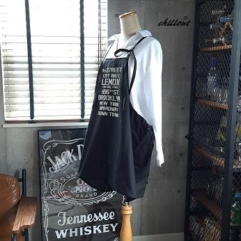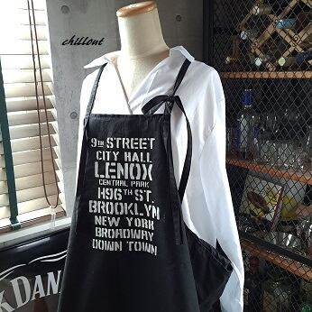 ブラック×ステンシルの存在感のあるおしゃれなエプロンをどうぞ。