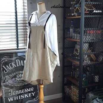 【背中がかわいい】エプロンドレス:ワッシャーリネン×ブラック【0578】