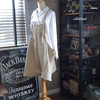 【背中がかわいい】エプロンドレス:ワッシャーリネン【0585】