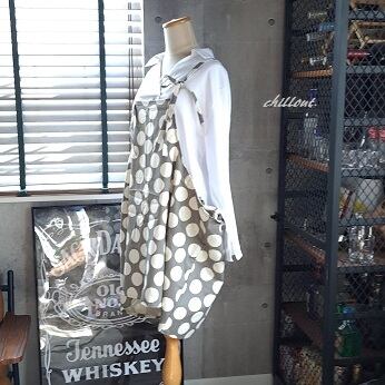 【背中がかわいい】エプロンドレス:グレードット【0586】