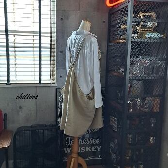 【背中がかわいい】エプロンドレス:ステンシル×リネン【0599】