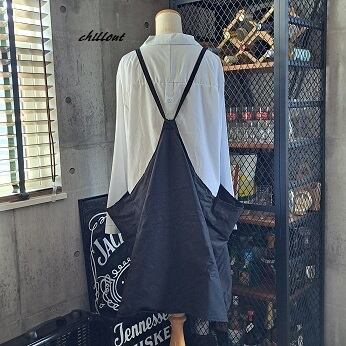 【背中がかわいい】エプロンドレス:ブラック×ブルックリンステンシル【0607】