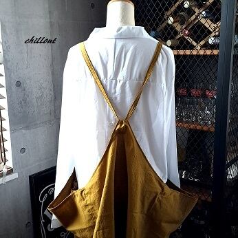 【背中がかわいい】エプロンリネン:マスタード:視力検査【0615】
