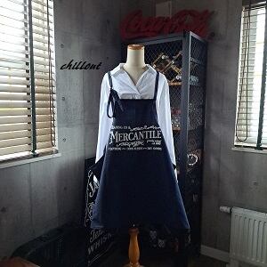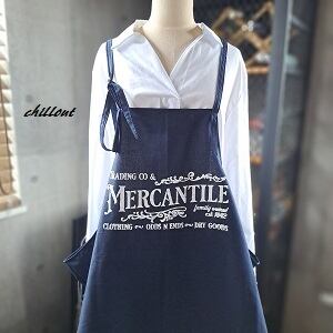【背中がかわいい】エプロンドレス:ネイビー×MERCANTILE【0629】