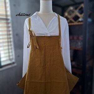 【背中がかわいい】エプロンドレス:ワッシャーリネン:マスタード【0639】