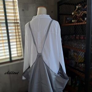 【OUTLET】【背中がかわいい】エプロンドレス:グレー×Coffee【0643】