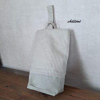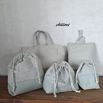 若草色×ストライプの切替が素敵な入園バッグ5点セットが出来上がりました!