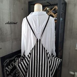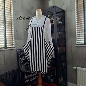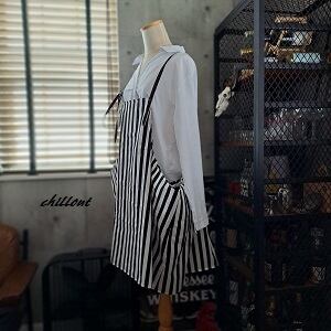 【背中がかわいい】エプロンドレス:モノトーン:ストライプ【0681】
