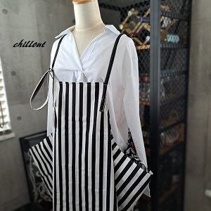【背中がかわいい】エプロンドレス:モノトーン:ストライプ【0682】