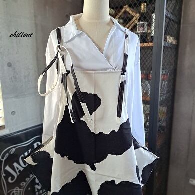 モノトーン(カウパターン)のエプロンドレスが出来上がりました。