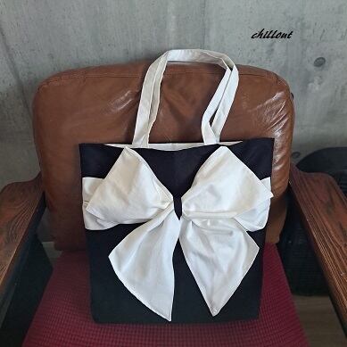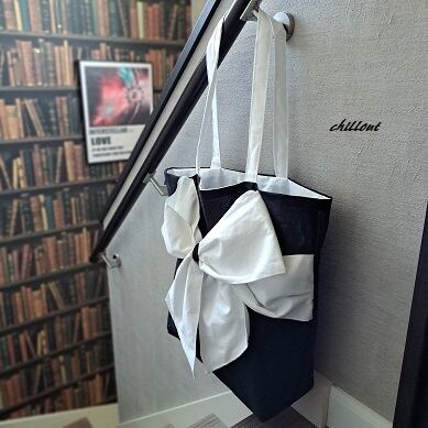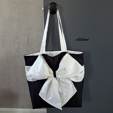 おおきなサイズのモノトーンリボンバッグが出来上がりました!