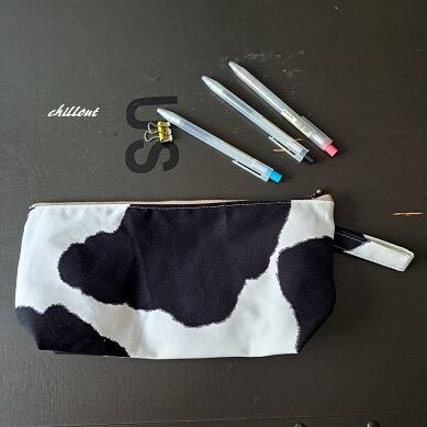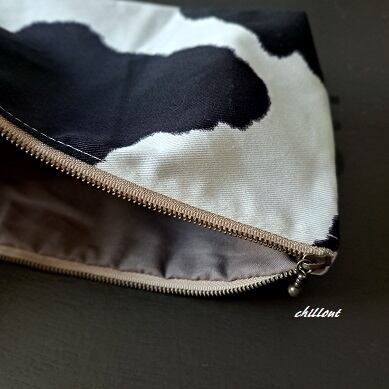 とってもかわいらしい牛柄のポーチが出来上がりました。