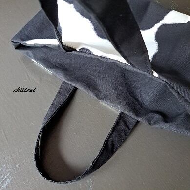 少し小さめでかわいい牛柄のトートバッグが出来上がりました。