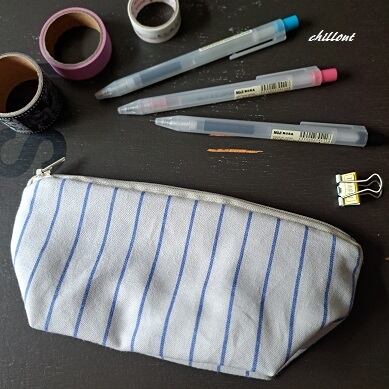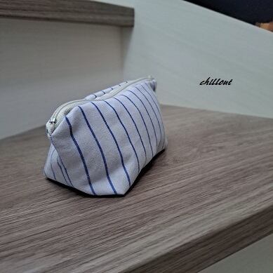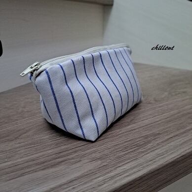 大人のさわやかなホワイト×ブルーのストライプポーチが出来上がりました。