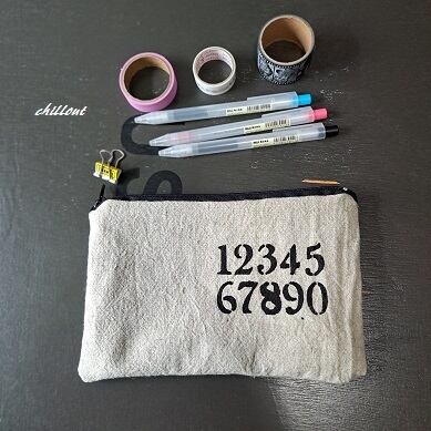 【リネンポーチ】ナンバー:リネン×ブラック【0768】
