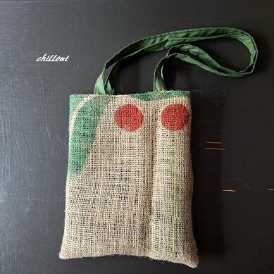 Coffee Hemp Bag:グリーンリーフ×レッドドット:トートバッグ【0776】